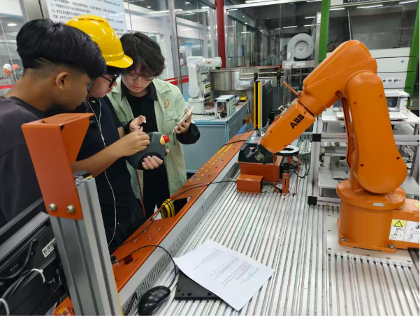 From September 24 to 26, the Mechanical and Electrical Engineering Department and Manufacturing Engineering Department carefully arranged a variety of professional courses taught entirely in English for the Singaporean students. Teachers Fu Fei and Liu Wei from the Manufacturing Engineering Department delivered courses titled "CNC Multi-Axis Part Modeling" and "Basic Application of Additive Manufacturing," while Teacher Xie Zhenzhen from the Mechanical and Electrical Engineering Department meticulously prepared the course "Industrial Robot Teaching Programming" for the Singaporean students. The classrooms were filled with active teacher-student interaction and a lively atmosphere. Through the close integration of theory and practice, the classes were full of a sense of achievement and joy.