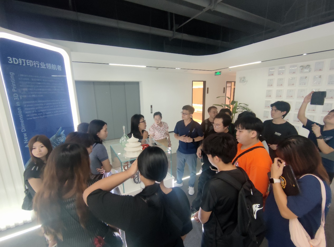 In the afternoon, the exchange teachers and students visited Shanghai Union Technology Co., Ltd. located in Songjiang District, immersing themselves in the innovative charm of 3D printing. In the 3D product exhibition hall, company staff displayed exhibits such as aerospace components and medical models, and explained the principles and application scenarios of 3D printing technology. In the workshop, teachers and students watched the operation of 3D printers up close, marveling at the process of material layer-by-layer stacking and forming. This visit broadened their horizons, stimulated the interest of Singaporean teachers and students in China's advanced manufacturing technology, and brought new opportunities for future cooperation between China and Singapore.