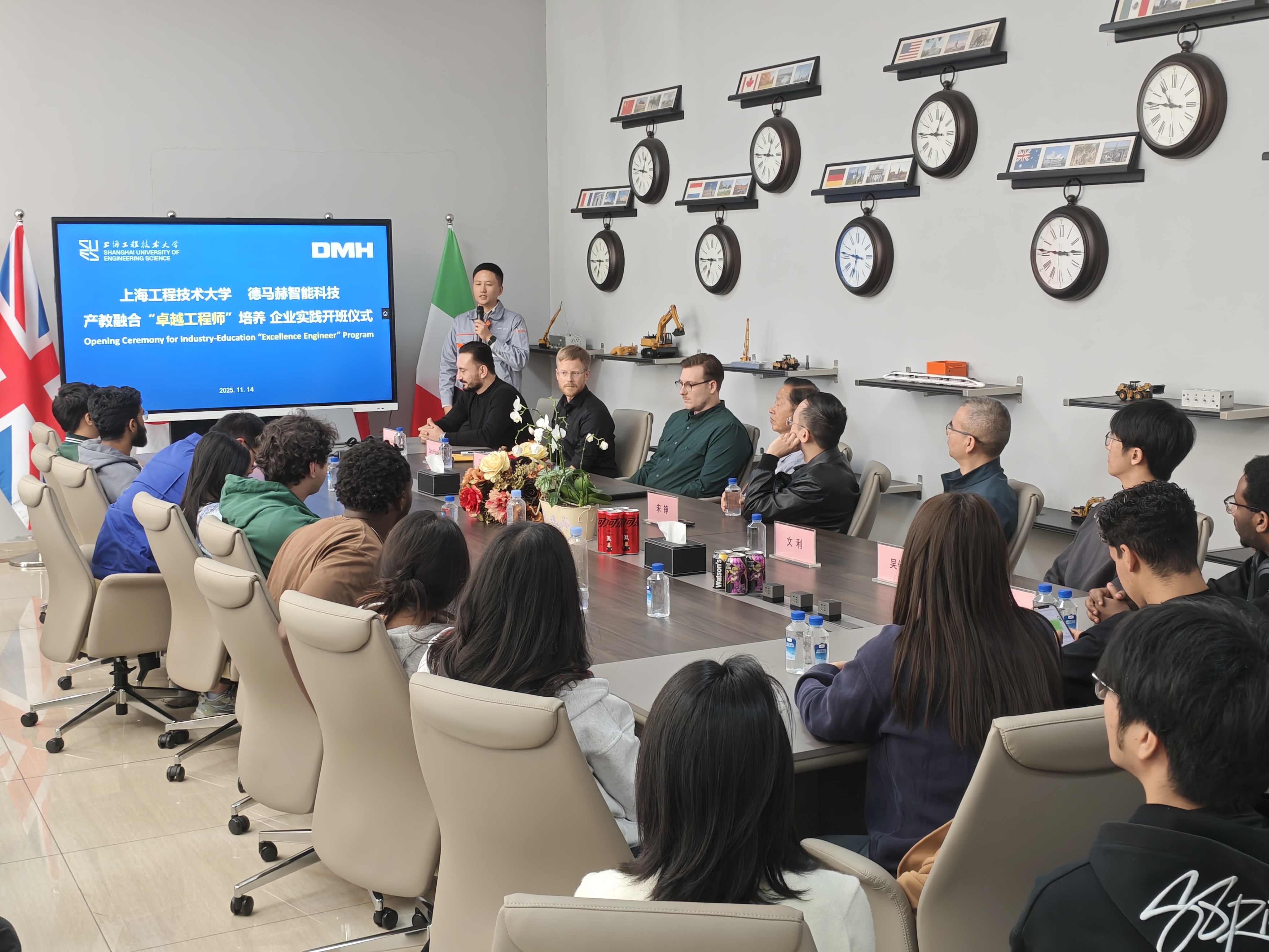 On November 14,2025, Shanghai University of Engineering Science's "Chengzhi Initiative – Mobile Classroom" program continued its outreach efforts. Twenty-five faculty and students from three colleges—the College of Higher Vocational Technology, International Education College, and College of Mechanical and Automotive Engineering—visited Demach Intelligent Technology (Shanghai) Co., Ltd. for an immersive study tour combining corporate insights, expert lectures, and hands-on exchanges. As a key component of the university's "Social Governance and Global Vision" elective course, this interdisciplinary initiative redefined the "city-as-campus" concept, demonstrating how knowledge can take root in real-world industrial contexts.